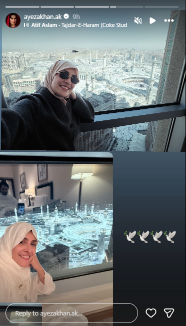 عائزہ خان نے انسٹاگرام پر تصاویر پوسٹ کرتے ہوئے دعا کی کہ اللہ تعالیٰ سب کے دلوں میں محبت پیدا کرے اور اس مقدس مہینے کو سب کے لیے خیر و برکت کا باعث بنائے۔