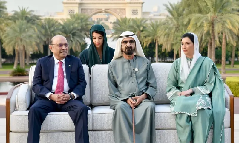 بدھ کو ایوان صدر سے جاری بیان کے مطابق صدر مملکت آصف علی زرداری نے دورہ متحدہ عرب امارات کے دوران اماراتی وزیراعظم شیخ محمد بن راشد المکتوم سے ملاقات کی۔ اس ملاقات میں خاتون اول بی بی آصفہ بھٹو زرداری ،چیئرمین پیپلز پارٹی بلاول بھٹو زرداری اور یو اے ای میں پاکستان کے سفیر بھی موجود تھے۔