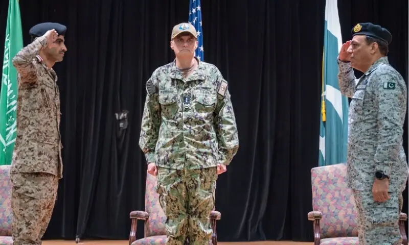 پاک فوج کے شعبہ تعلقات عامہ کے مطابق تقریب کے دوران پاکستان نیوی کے کموڈور محمد یاسر طاہر نے کمان رائل سعودی نیول فورسز کے کموڈور فہد ایس الجواید سے سنبھالی۔
