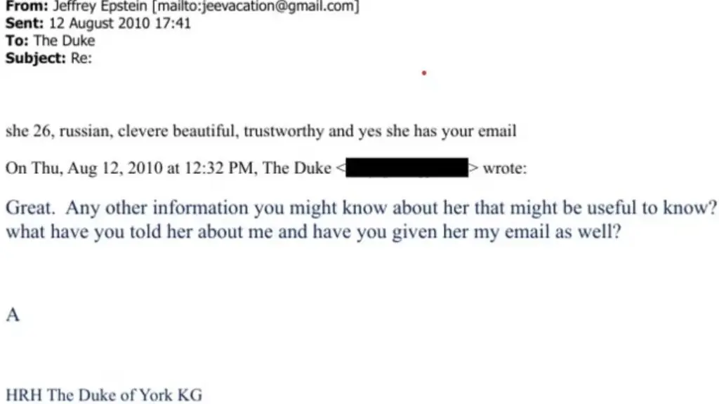 ای میلز سے ظاہر ہوتا ہے کہ اینڈریو نے اس خاتون کے بارے میں مزید معلومات بھی مانگیں، حالانکہ وہ پہلے کہہ چکے تھے کہ انہوں نے 2006 میں ایپسٹین سے تعلق ختم کر لیا تھا۔