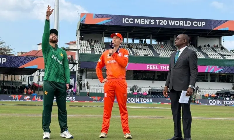 ٹی ٹوئنٹی ورلڈ کپ کے افتتاحی میچ میں پاکستان نے نیدرلینڈز کے خلاف ٹاس جیت کر پہلے فیلڈنگ کرنے کا فیصلہ کیا ہے۔