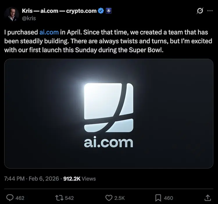 کرپٹو ویب سائٹ کے سی ای و کرس مارزالیک نے اس خریداری کی خود تصدیق کرتے ہوئے کہا کہ اے ڈاٹ کام کو جلد ایک نئے مصنوعی ذہانت کے پلیٹ فارم کے اجرا کے لیے استعمال کیا جائے گا۔ ان کے مطابق اس پلیٹ فارم کی پہلی عوامی نمائش آئندہ سپر باؤل کے دوران نشر ہونے والے کمرشل کے ساتھ متوقع ہے۔
