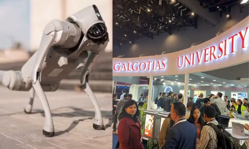 بھارتی میڈیا کے مطابق گلگوٹیاس یونیورسٹی کی جانب سے اے آئی سمٹ میں ایک روبوٹک کتا پیش کیا گیا جسے ’اوریئن‘ نام دیا گیا تھا۔