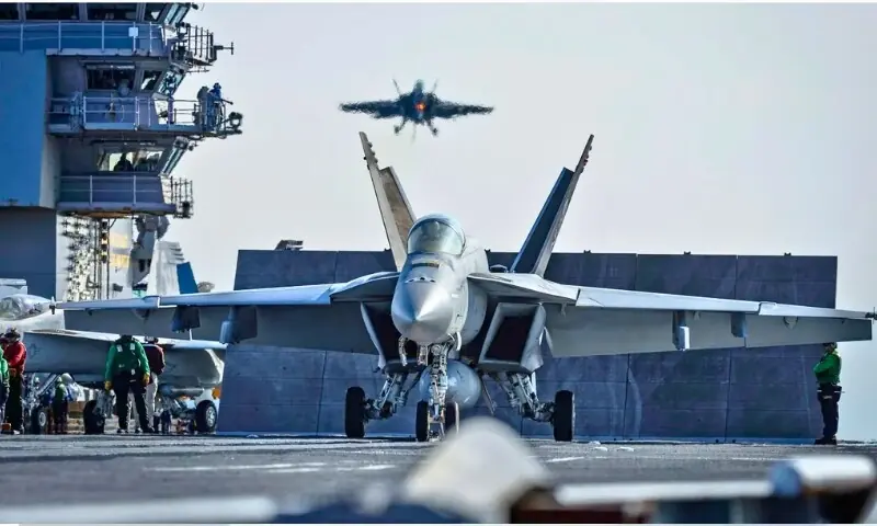 رپورٹس کے مطابق امریکی بحری بیڑہ یو ایس ایس جیرالڈ فورڈ بھی اس ہفتے خطے میں پہنچ سکتا ہے۔ اس کے علاوہ برطانیہ میں تعینات امریکی فضائیہ کے طیاروں، بشمول ری فیولنگ ٹینکرز اور لڑاکا جہازوں، کو بھی مشرق وسطیٰ کے قریب منتقل کیا جا رہا ہے۔