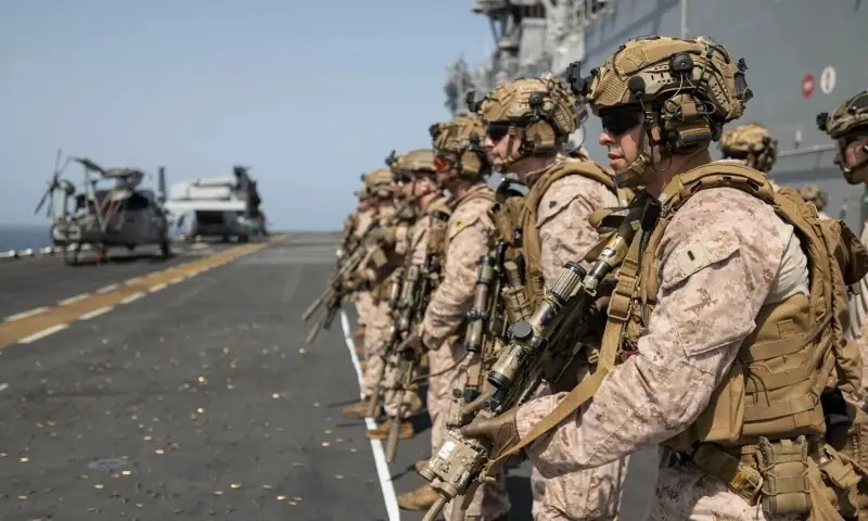 امریکی اخبار دی وال اسٹریٹ جرنل کی رپورٹ کے مطابق امریکا نے جنگی صورتحال کے پیش نظر مشرقِ وسطیٰ میں اپنی فوجی موجودگی بڑھانے کے لیے تقریباً 5 ہزار میرینز اور دیگر فوجی اہلکاروں کو تعینات کرنے کا فیصلہ کیا ہے، جن کے ساتھ کئی جنگی بحری جہاز بھی خطے میں بھیجے جائیں گے۔