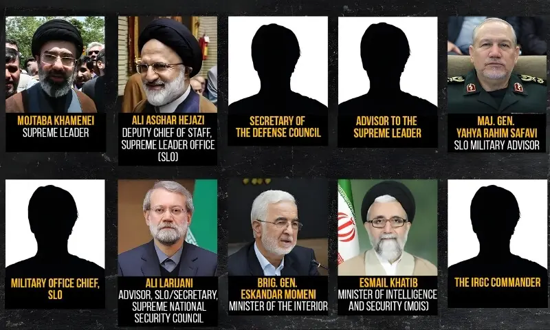 اس فہرست میں مجتبیٰ خامنہ ای کے علاوہ انکے دفتر کے چیف آف اسٹاف علی اصغر حجازی، سپریم نیشنل سیکیورٹی کونسل کے سیکریٹری علی لاریجانی، وزیر داخلہ اسکندر مومنی اور انٹیلی جنس وزیر اسماعیل خطیب سمیت پاسداران انقلاب کے سینئر کمانڈرز بھی شامل ہیں۔