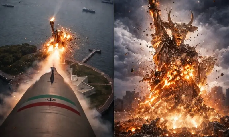 ایران کی جانب سے جاری کی گئی مصنوعی ذہانت یعنی اے آئی کی مدد سے تیار کردہ ایک ویڈیو تیزی سے انٹرنیٹ پر گردش کر رہی ہے جس میں امریکا سے بدلہ لینے کے مناظر دکھائے گئے ہیں۔ اس ویڈیو کا اختتام ایک میزائل حملے پر ہوتا ہے جو نیویارک میں نصب مشہورِ زمانہ مجسمہ آزادی سے ٹکراتا ہے اور اسے ٹکڑے ٹکڑے کر دیتا ہے۔