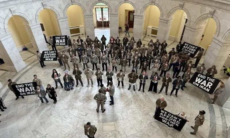 امریکی دارالحکومت واشنگٹن ڈی سی میں ایران جنگ کے خلاف احتجاج کرنے والے 60 سے زائد سابق امریکی فوجیوں اور ان کے اہلِ خانہ کو کانگریس کی ایک عمارت کے باہر دھرنا دینے پر گرفتار کر لیا گیا ہے۔