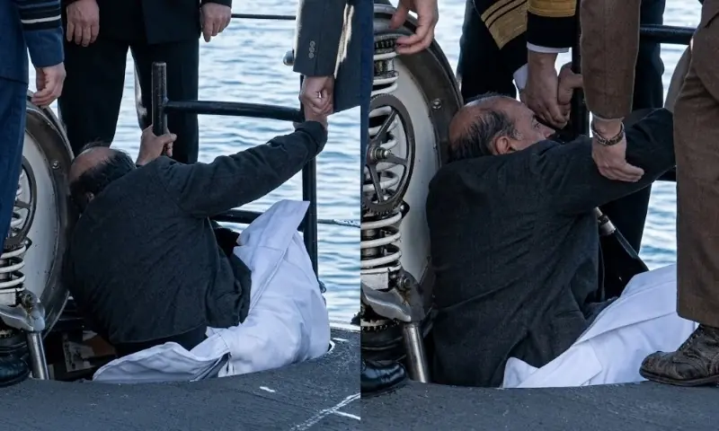 ویڈیو کے مطابق اس موقع پر آبدوز پر موجود جرمن اہلکار فوری طور پر آگے بڑھے اور بھارتی وزیر دفاع کو سہارا دے کر صورتحال کو سنبھالنے میں مدد فراہم کی۔